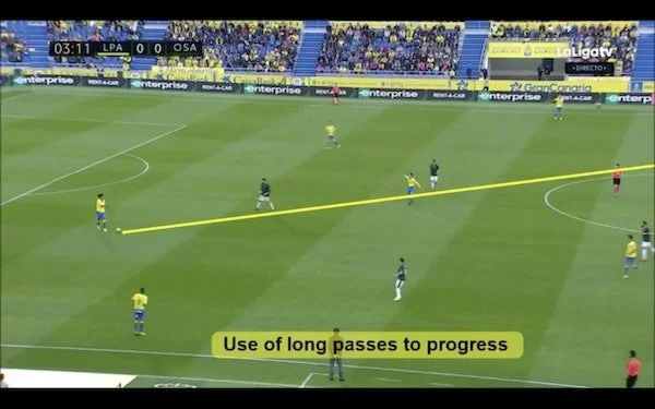 However, what sets Setién apart from other possession based managers, and frankly makes his style of play unique, is the use of long balls within this style of play. Some may argue that a team which utilises 40-50 yard balls to progress up the pitch is not a possession based team, however, Setién has said on several occasions that he isn’t a ‘radical possessionist’. By this, he means he doesn’t believe in trying to keep the ball at all costs, especially in dangerous situations, and whenever necessary he expects his deep-lying players (CB’s, pivots, GK’s etc.) to release pressure and send the ball into areas where they can contest the second ball.